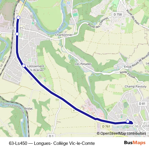 Click here to view the nearest 63-Ls450 - Longues- Collège Vic-le-Comte bus stop.