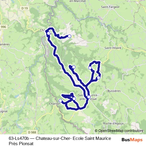 The first stop of the 63-Ls470b bus route is Villecheleix and the last stop is Ecole Saint-Maurice-près-Pionsat. 63-Ls470b (Chateau-sur-Cher- Ecole Saint Maurice Près Pionsat) is operational during tous les jours.