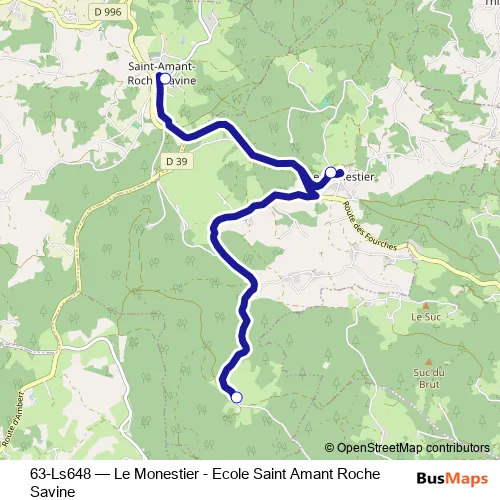 The first stop of the 63-Ls648 bus route is Virennes and the last stop is Ecole Saint-Amant-Roche-Savine. 63-Ls648 (Le Monestier - Ecole Saint Amant Roche Savine) is operational during tous les jours.