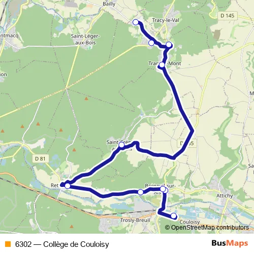 The first stop of the 6302 bus route is Couloisy - Collège Louis Bouland and the last stop is Saint-Crepin-AUX-Bois - Centre. 6302 (Collège de Couloisy) is operational during en semaine.