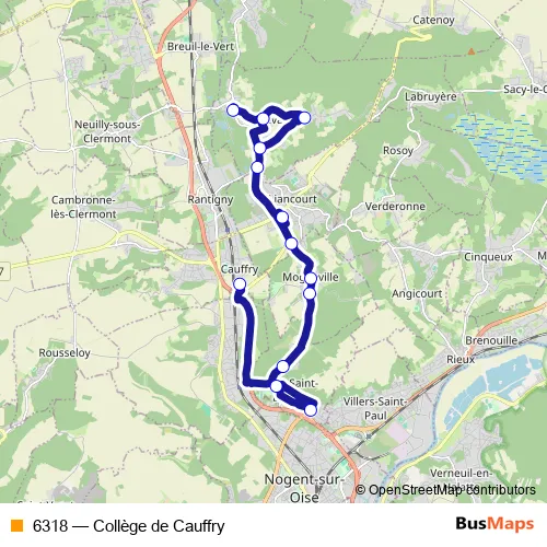 The first stop of the 6318 bus route is Cauffry - Collège Simone Veil and the last stop is Bailleval - Senecourt. 6318 (Collège de Cauffry) is operational during en semaine.