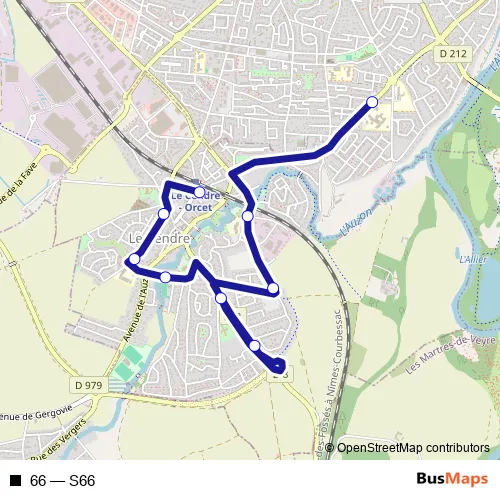 The first stop of the 66 bus route is Collège de La Ribeyre and the last stop is Gare Le Cendre/Orcet. 66 (S66) is operational during en semaine.