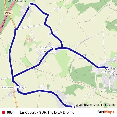Click here to view the nearest 6654 - LE Coudray SUR Thelle-LA Drenne bus stop.
