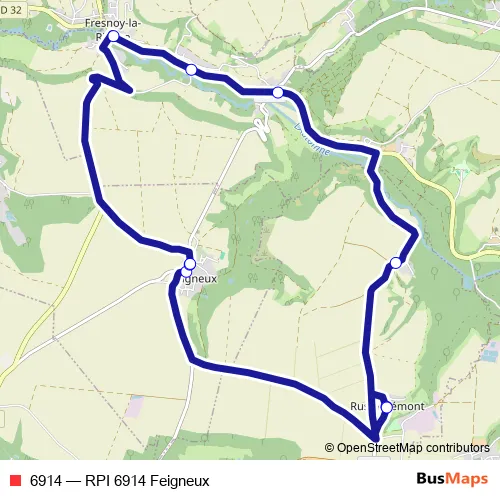 The first stop of the 6914 bus route is Russy Bemont - Ecole and the last stop is Feigneux - École. 6914 (RPI 6914 Feigneux) is operational during tous les jours.