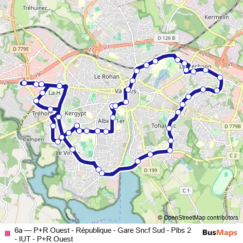 Bus 6a - P+R Ouest - République - Gare Sncf Sud - Pibs 2 - IUT - P+R Ouest: Full Schedule in Vannes