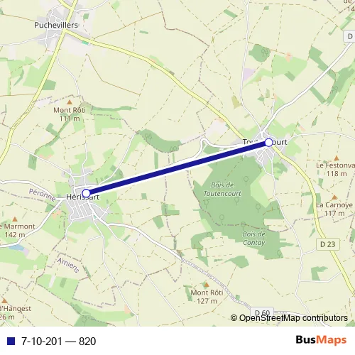 The first stop of the 7-10-201 bus route is Herissart - 6 rue du Château and the last stop is Herissart - 6 rue du Château. 7-10-201 (820) is operational during tous les jours.