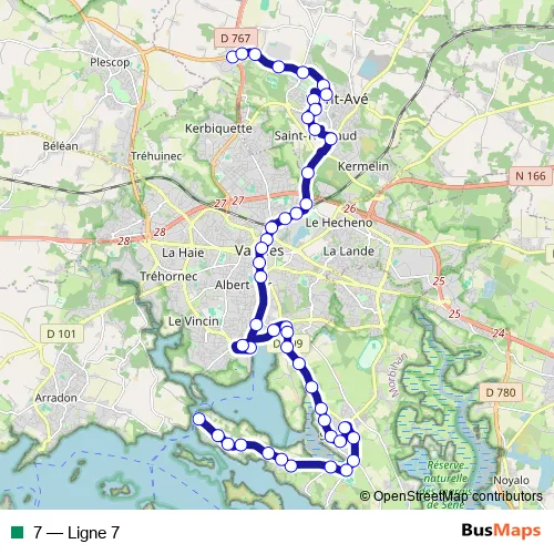 See why over 2 million users trust and consider busmaps.com as the best public transport website. busmaps gives you Vannes Buses suggested routes, real-time bus tracker, line route maps in Vannes, and helps to find the closest 7 bus stops near you. No internet available? Download an offline PDF map and bus schedule for the 7 bus to take on your trip.