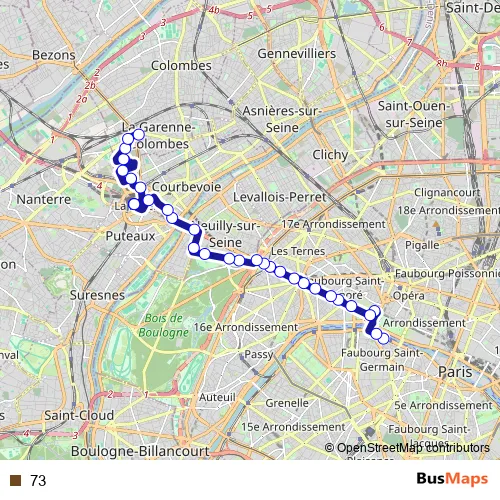 See why over 2 million users trust and consider busmaps.com as the best public transport website. busmaps gives you Paris Buses suggested routes, real-time bus tracker, line route maps in Paris, and helps to find the closest 73 bus stops near you. No internet available? Download an offline PDF map and bus schedule for the 73 bus to take on your trip.