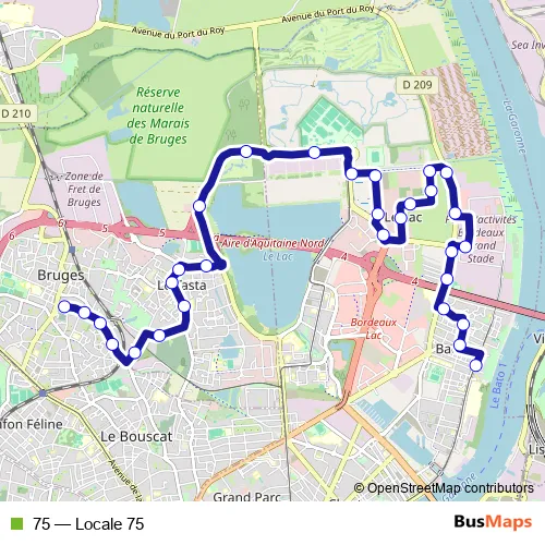 See why over 2 million users trust and consider busmaps.com as the best public transport website. busmaps gives you Bordeaux Buses suggested routes, real-time bus tracker, line route maps in Bordeaux, and helps to find the closest 75 bus stops near you. No internet available? Download an offline PDF map and bus schedule for the 75 bus to take on your trip.