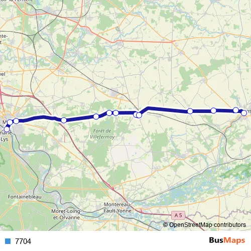 The first stop of the 7704 bus route is Gare de Melun - Place de l'Ermitage and the last stop is Gare Sncf Quai 1. 7704 is operational during tous les jours.