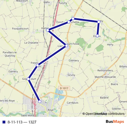 See why over 2 million users trust and consider busmaps.com as the best public transport website. busmaps gives you Roye Buses suggested routes, real-time bus tracker, line route maps in Roye, and helps to find the closest 8-11-113 bus stops near you. No internet available? Download an offline PDF map and bus schedule for the 8-11-113 bus to take on your trip.