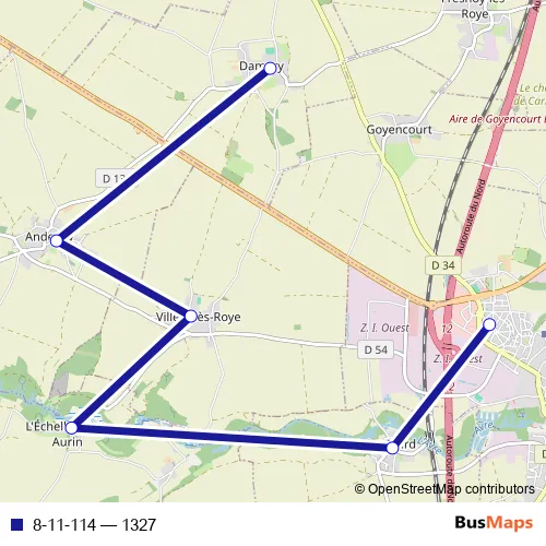 The first stop of the 8-11-114 bus route is Damery - Eglise and the last stop is Roye - Collège Louise Michel. 8-11-114 (1327) is operational during tous les jours.