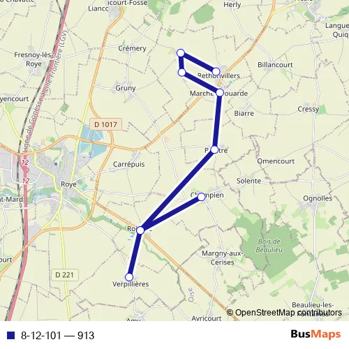 Bus 8-12-101 - 913 Schedule in Roye