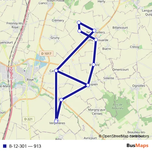 See why over 2 million users trust and consider busmaps.com as the best public transport website. busmaps gives you Roye Buses suggested routes, real-time bus tracker, line route maps in Roye, and helps to find the closest 8-12-301 bus stops near you. No internet available? Download an offline PDF map and bus schedule for the 8-12-301 bus to take on your trip.