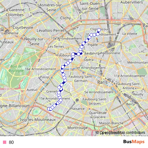 See why over 2 million users trust and consider busmaps.com as the best public transport website. busmaps gives you Paris Buses suggested routes, real-time bus tracker, line route maps in Paris, and helps to find the closest 80 bus stops near you. No internet available? Download an offline PDF map and bus schedule for the 80 bus to take on your trip.