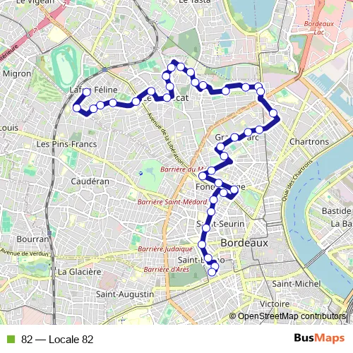 See why over 2 million users trust and consider busmaps.com as the best public transport website. busmaps gives you Bordeaux Buses suggested routes, real-time bus tracker, line route maps in Bordeaux, and helps to find the closest 82 bus stops near you. No internet available? Download an offline PDF map and bus schedule for the 82 bus to take on your trip.