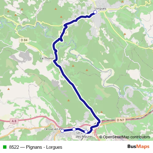 Bus 8522 - Pignans - Lorgues: Full Schedule in Le Luc