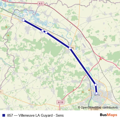 Click here to view the nearest 857 - Villeneuve LA Guyard - Sens bus stop.