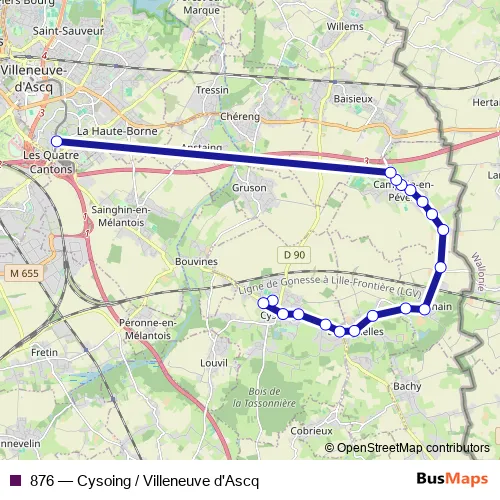 Click here to view the nearest 876 - Cysoing / Villeneuve d'Ascq bus stop.