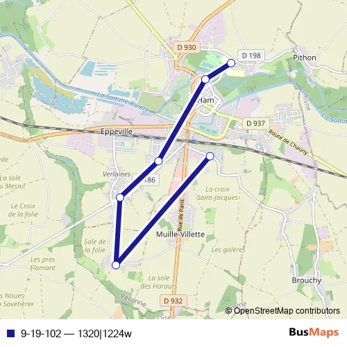 The first stop of the 9-19-102 bus route is Muille-Villette - Flamicourt and the last stop is HAM - Collège Victor Hugo. 9-19-102 (1320|1224w) is operational during en semaine.