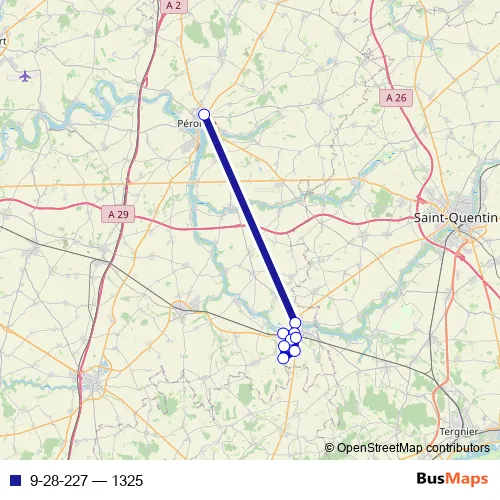 The first stop of the 9-28-227 bus route is Peronne - Lycée P. M. France and the last stop is Muille-Villette - Paris. 9-28-227 (1325) is operational during tous les jours.
