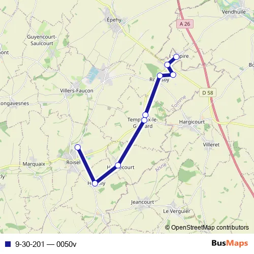 The first stop of the 9-30-201 bus route is Roisel - Collège Gaston Boucourt and the last stop is Lempire - Centre. 9-30-201 (0050v) is operational during tous les jours.