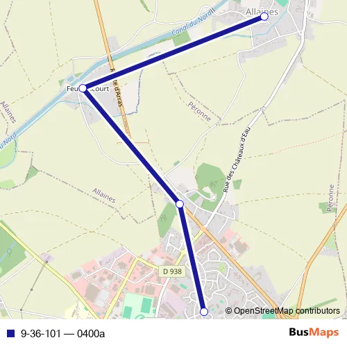 The first stop of the 9-36-101 bus route is Allaines - Centre and the last stop is Peronne - Ecole du Mont Saint-Quentin. 9-36-101 (0400a) is operational during tous les jours.