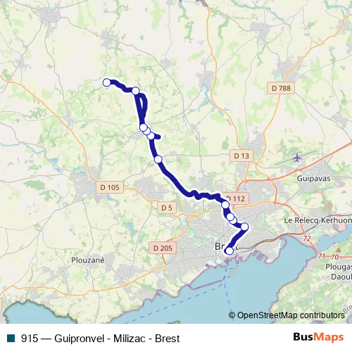 Bus 915 - Guipronvel - Milizac - Brest: Full Schedule in Brest