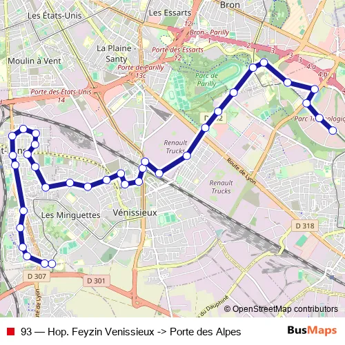 See why over 2 million users trust and consider busmaps.com as the best public transport website. busmaps gives you Lyon Buses suggested routes, real-time bus tracker, line route maps in Lyon, and helps to find the closest 93 bus stops near you. No internet available? Download an offline PDF map and bus schedule for the 93 bus to take on your trip.
