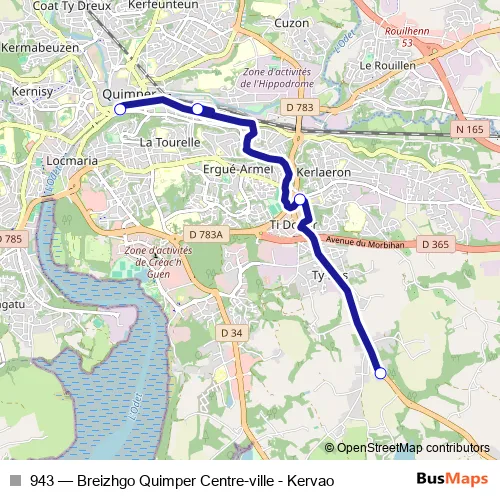 Click here to view the nearest 943 - Breizhgo Quimper Centre-ville - Kervao bus stop.