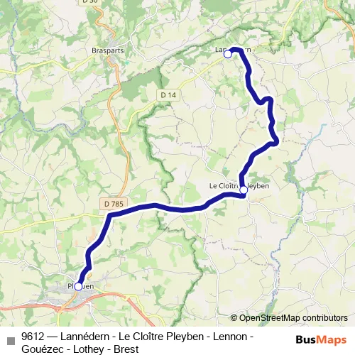 Click here to view the nearest 9612 - Lannédern - Le Cloître Pleyben - Lennon - Gouézec - Lothey - Brest bus stop.