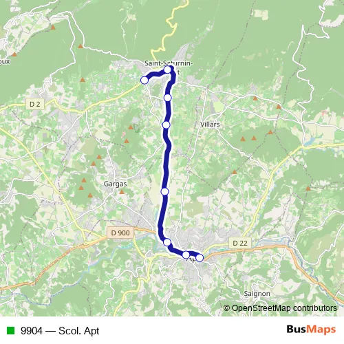 See why over 2 million users trust and consider busmaps.com as the best public transport website. busmaps gives you Apt Buses suggested routes, real-time bus tracker, line route maps in Apt, and helps to find the closest 9904 bus stops near you. No internet available? Download an offline PDF map and bus schedule for the 9904 bus to take on your trip.