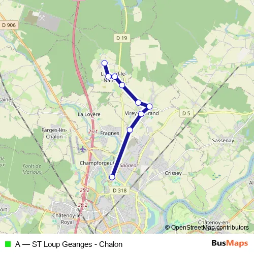 The first stop of the A bus route is CES Jacques Prevert and the last stop is LES Hameaux. A (ST Loup Geanges - Chalon) is operational during en semaine.