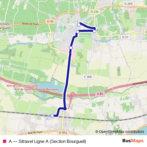 Click here to view the nearest A - Sitravel Ligne A (Section Bourgueil) bus stop.