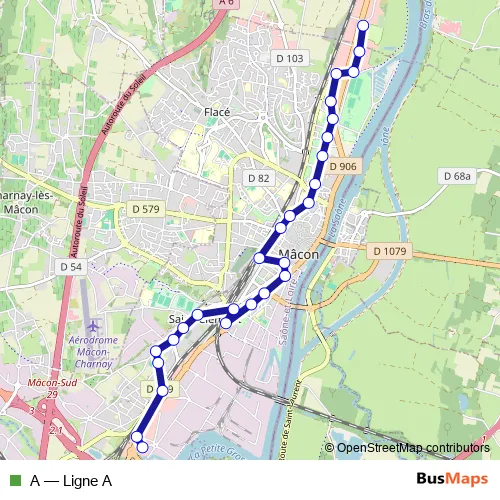 The first stop of the A bus route is Camping and the last stop is Nicéphore Niepce. A (Ligne A) is operational during tous les jours.