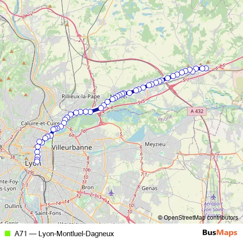 Bus A71 - Lyon-Montluel-Dagneux in Lyon: Stops & Timetable