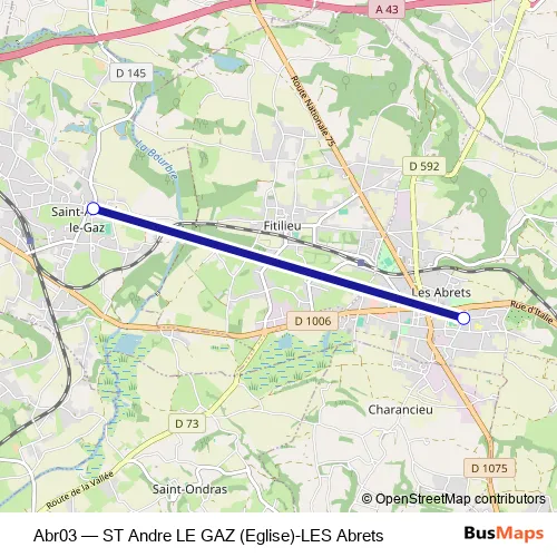 See why over 2 million users trust and consider busmaps.com as the best public transport website. busmaps gives you Saint-Andre-le-Gaz Buses suggested routes, real-time bus tracker, line route maps in Saint-Andre-le-Gaz, and helps to find the closest Abr03 bus stops near you. No internet available? Download an offline PDF map and bus schedule for the Abr03 bus to take on your trip.
