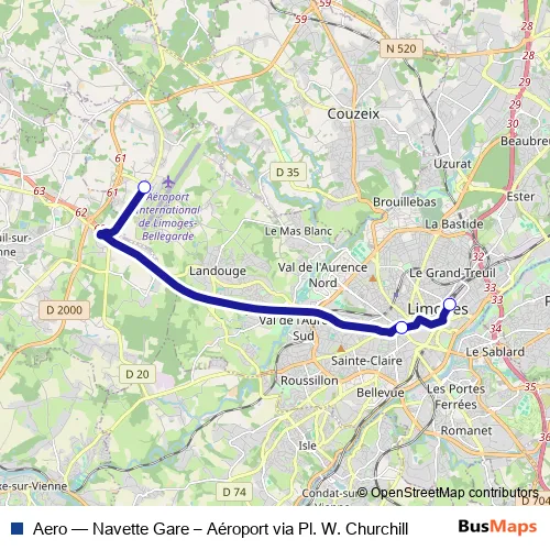 Bus Aero - Navette Gare – Aéroport via Pl. W. Churchill: Full Schedule in Limoges