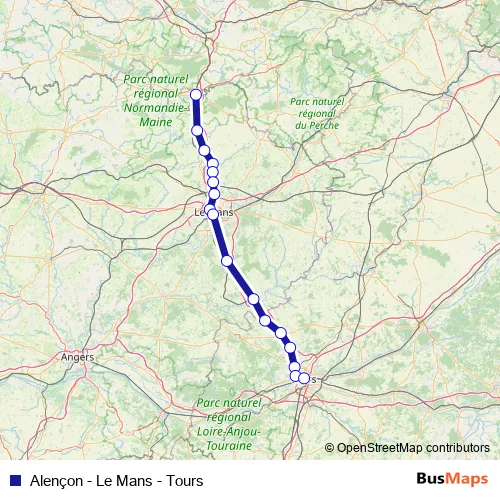 Additional information: Alençon - Le Mans - Tours has 9 stops and the total trip duration for this route is approximately 72 minutes.
