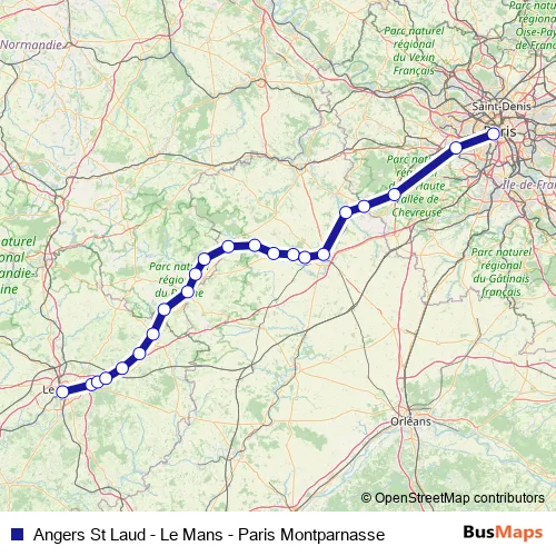 See why over 2 million users trust and consider busmaps.com as the best public transport website. busmaps gives you Chartres Rail Services suggested routes, real-time bus tracker, line route maps in Chartres, and helps to find the closest Angers St Laud - Le Mans - Paris Montparnasse rail stops near you. No internet available? Download an offline PDF map and bus schedule for the Angers St Laud - Le Mans - Paris Montparnasse rail to take on your trip.