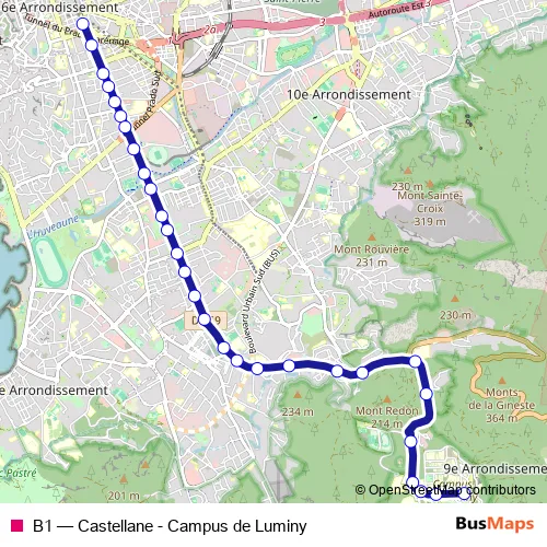 Bus B1 - Castellane - Campus de Luminy Schedule in Marseille