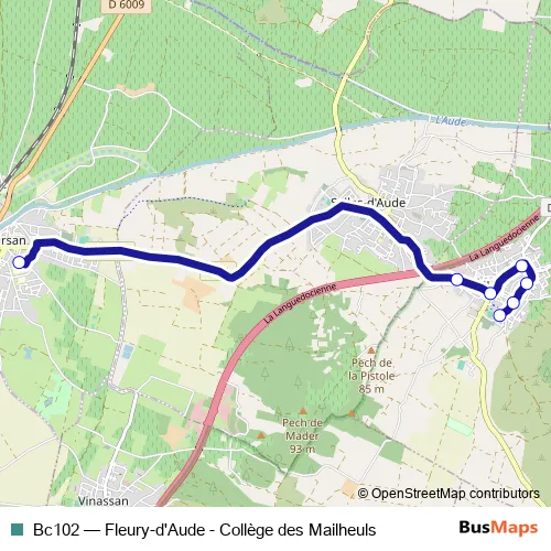Click here to view the nearest Bc102 - Fleury-d'Aude - Collège des Mailheuls bus stop.