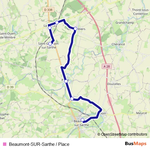 Additional information: Beaumont-SUR-Sarthe / Piace has 7 stops and the total trip duration for this route is approximately 28 minutes.