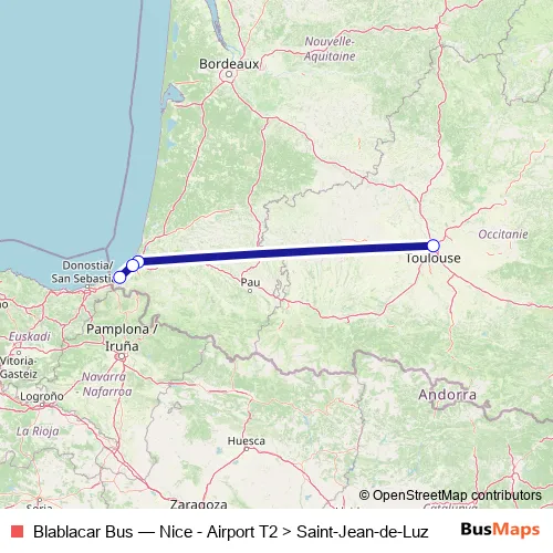 Click here to view the nearest Blablacar Bus - Nice - Airport T2 > Saint-Jean-de-Luz bus stop.