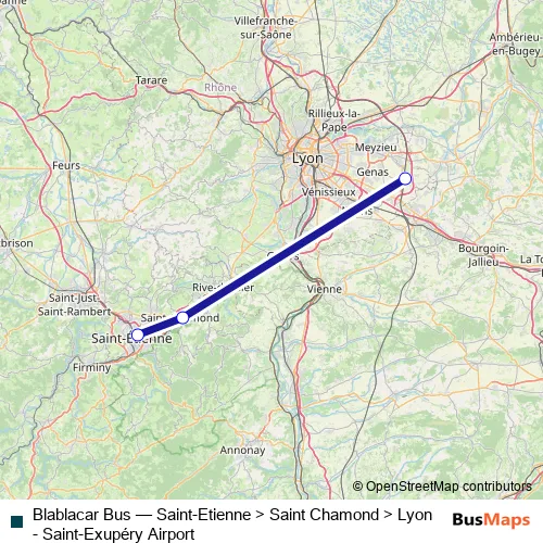 Click here to view the nearest Blablacar Bus - Saint-Etienne > Saint Chamond > Lyon - Saint-Exupéry Airport bus stop.