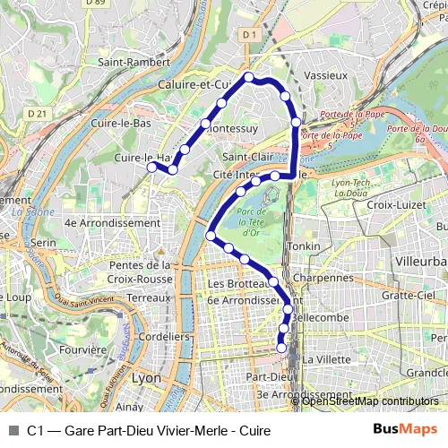 See why over 2 million users trust and consider busmaps.com as the best public transport website. busmaps gives you Lyon Trolleybuses suggested routes, real-time bus tracker, line route maps in Lyon, and helps to find the closest C1 trolleybus stops near you. No internet available? Download an offline PDF map and bus schedule for the C1 trolleybus to take on your trip.