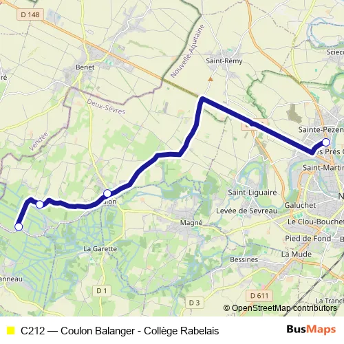 Click here to view the nearest C212 - Coulon Balanger - Collège Rabelais bus stop.