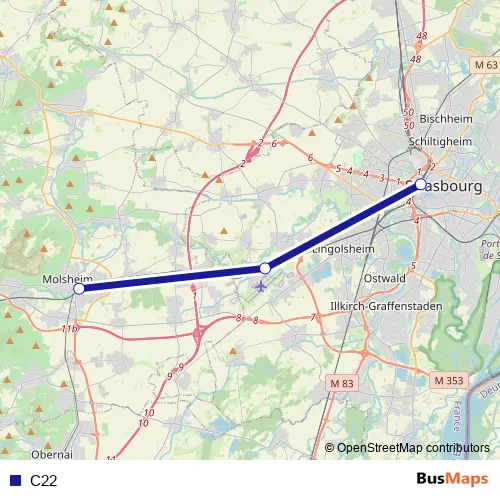 See why over 2 million users trust and consider busmaps.com as the best public transport website. busmaps gives you Strasbourg Buses suggested routes, real-time bus tracker, line route maps in Strasbourg, and helps to find the closest C22 bus stops near you. No internet available? Download an offline PDF map and bus schedule for the C22 bus to take on your trip.