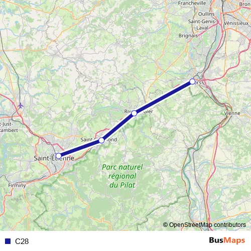 See why over 2 million users trust and consider busmaps.com as the best public transport website. busmaps gives you Saint-Etienne Buses suggested routes, real-time bus tracker, line route maps in Saint-Etienne, and helps to find the closest C28 bus stops near you. No internet available? Download an offline PDF map and bus schedule for the C28 bus to take on your trip.