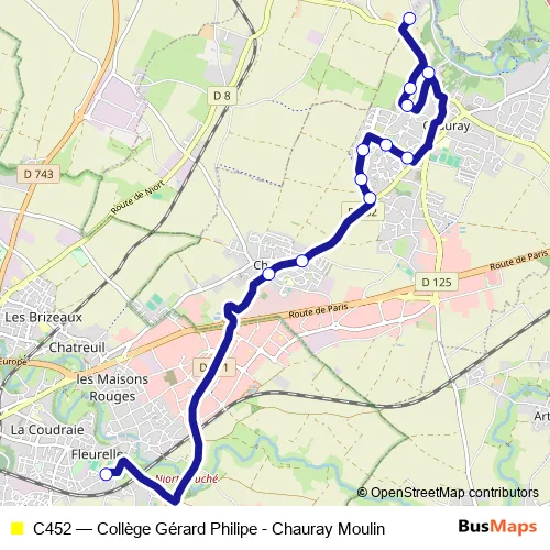 Click here to view the nearest C452 - Collège Gérard Philipe - Chauray Moulin bus stop.
